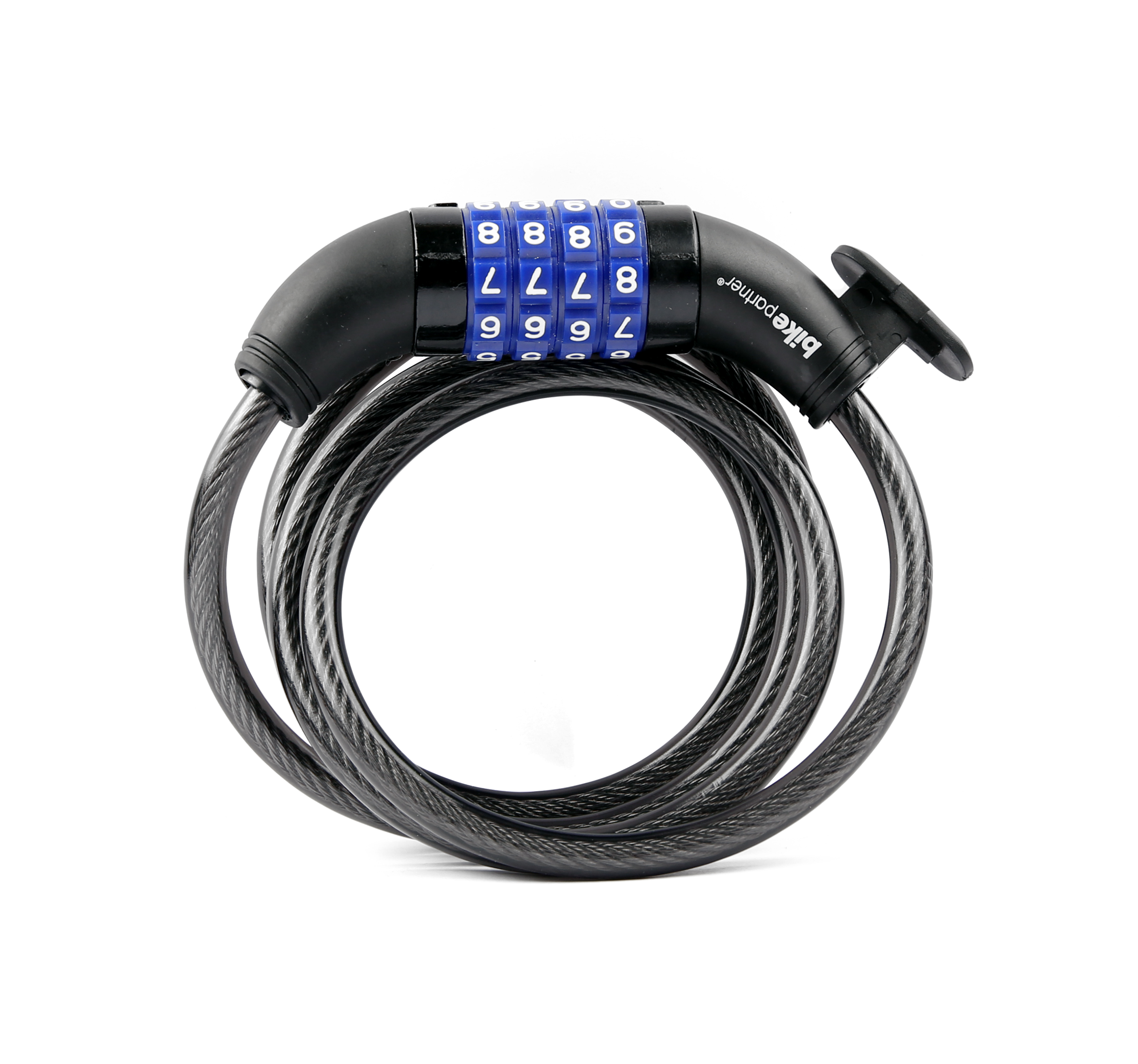 Spirallås sort BikePartner sikkerhedsniveau 4 1500x8mm m.valgfri kode/holder (10/40)