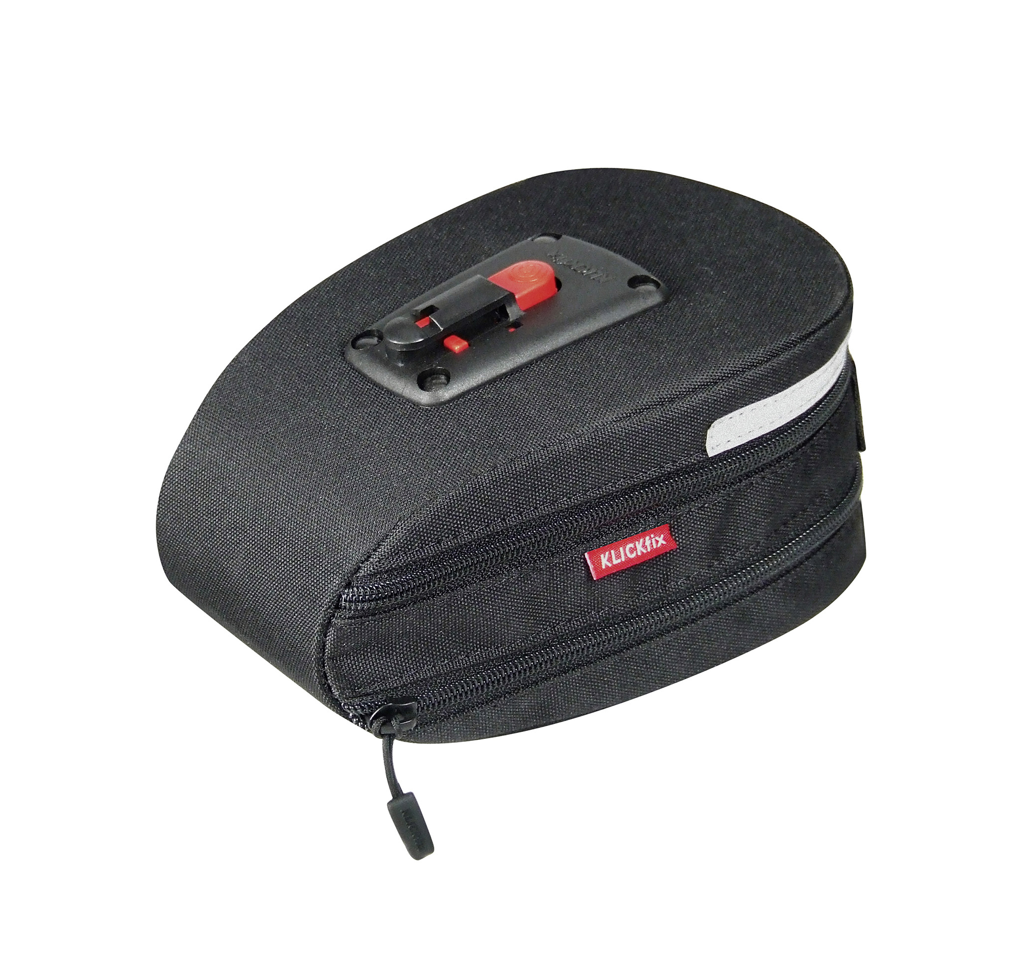 Klickfix patenterede Quick-Release-System inkludere en kompakte adapter som passer til de fleste sportssadler. Tilbehøret (sadeltasken) glider ganske enkelt ind og låses automatisk i adapteren. Tasken frigøres nemt ved blot at trykke på en af de røde knapper. Adapteren passer til alle tasker i Klickfix "Micro" serien samt kabellåsholderen.