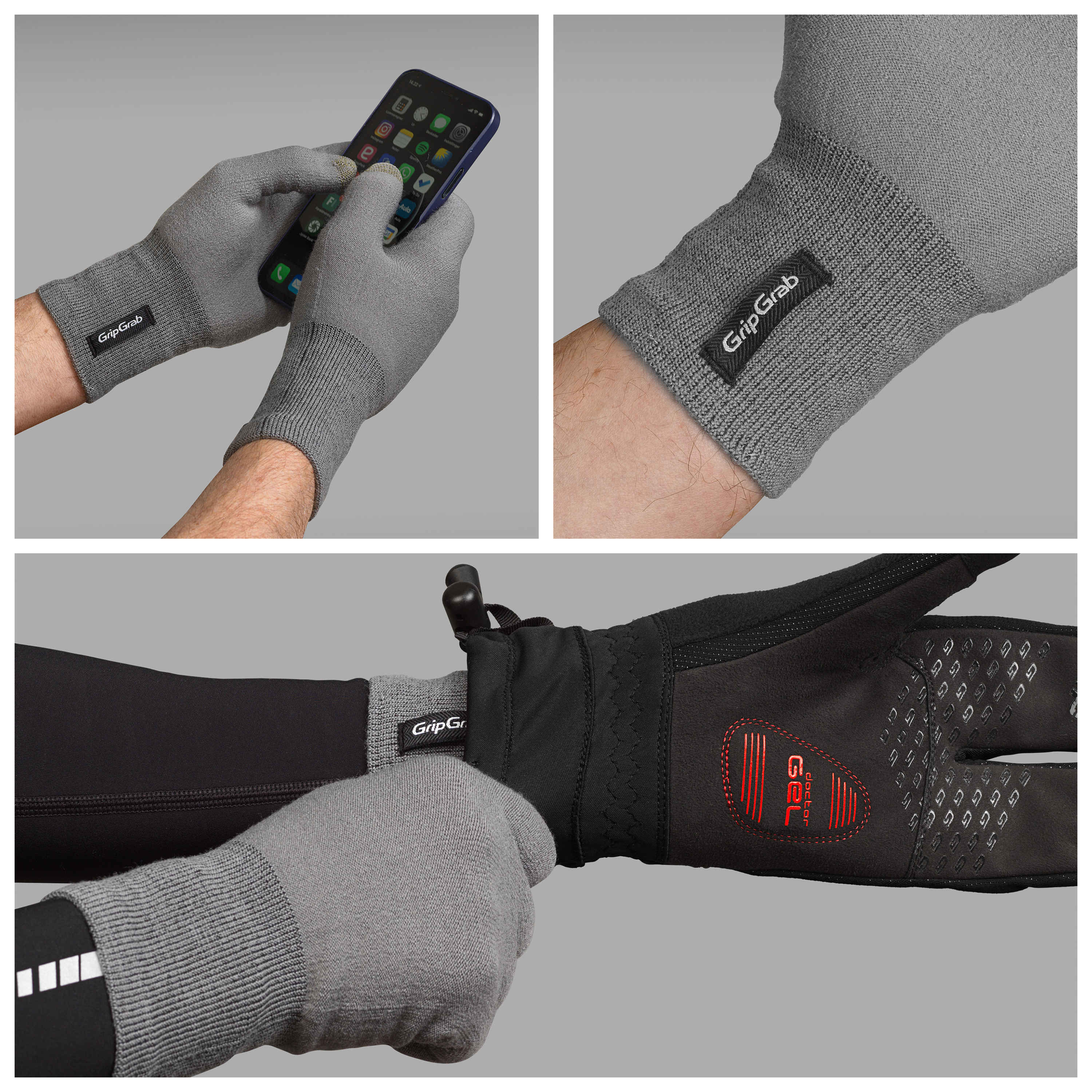 • GripGrab Merino Liner Inderhandsker er tynde, men stærkt isolerende merinouldshandsker, der er designet til at blive båret under vintercykelhandsker for at yde ekstra isolering og beskyttelse mod kulden. De kan også bæres alene som et stilfuldt valg,når du ikke cykler. Takket være touchscreen-kompatible tommel- og pegefingre kan du besvare opkald eller tage et billede uden at tage handskerne af.