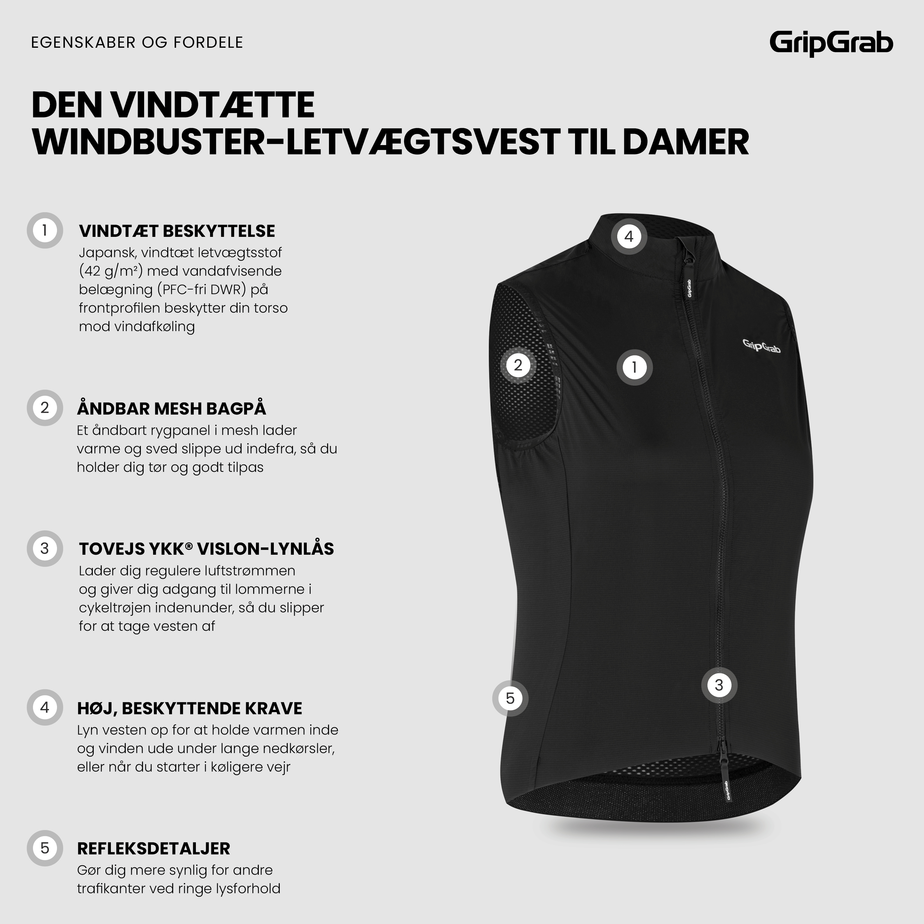 Egenskaber 11 En let og komprimerbar beskyttelse mod vindafkøling vindtæt GripGrab PACR-letvægtsvest er en alsidig og minimalistisk tilføjelse til dit udstyr, som kan gøre hele forskellen for din komfort på kølige dage med blæsevejr og under lange nedkørsler.