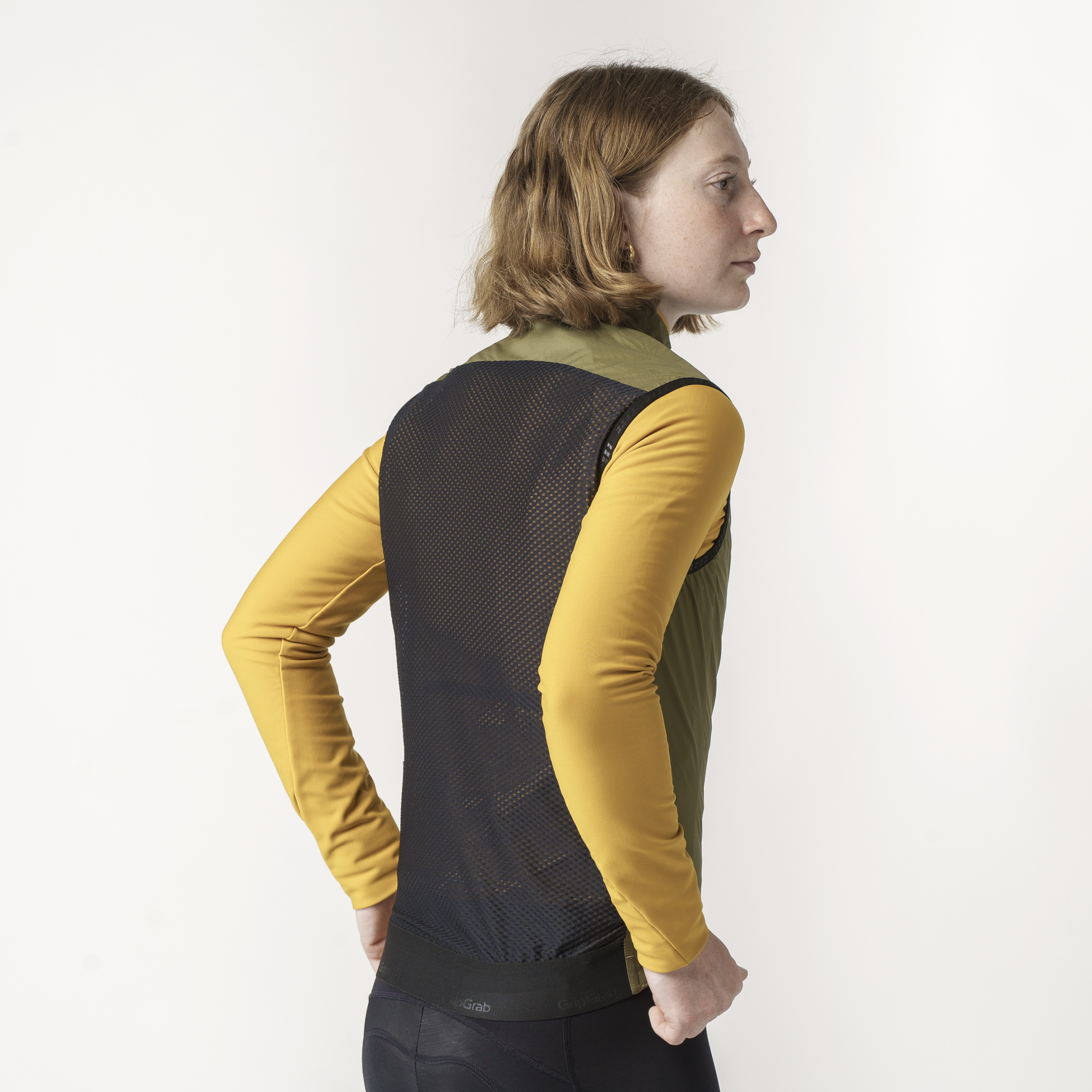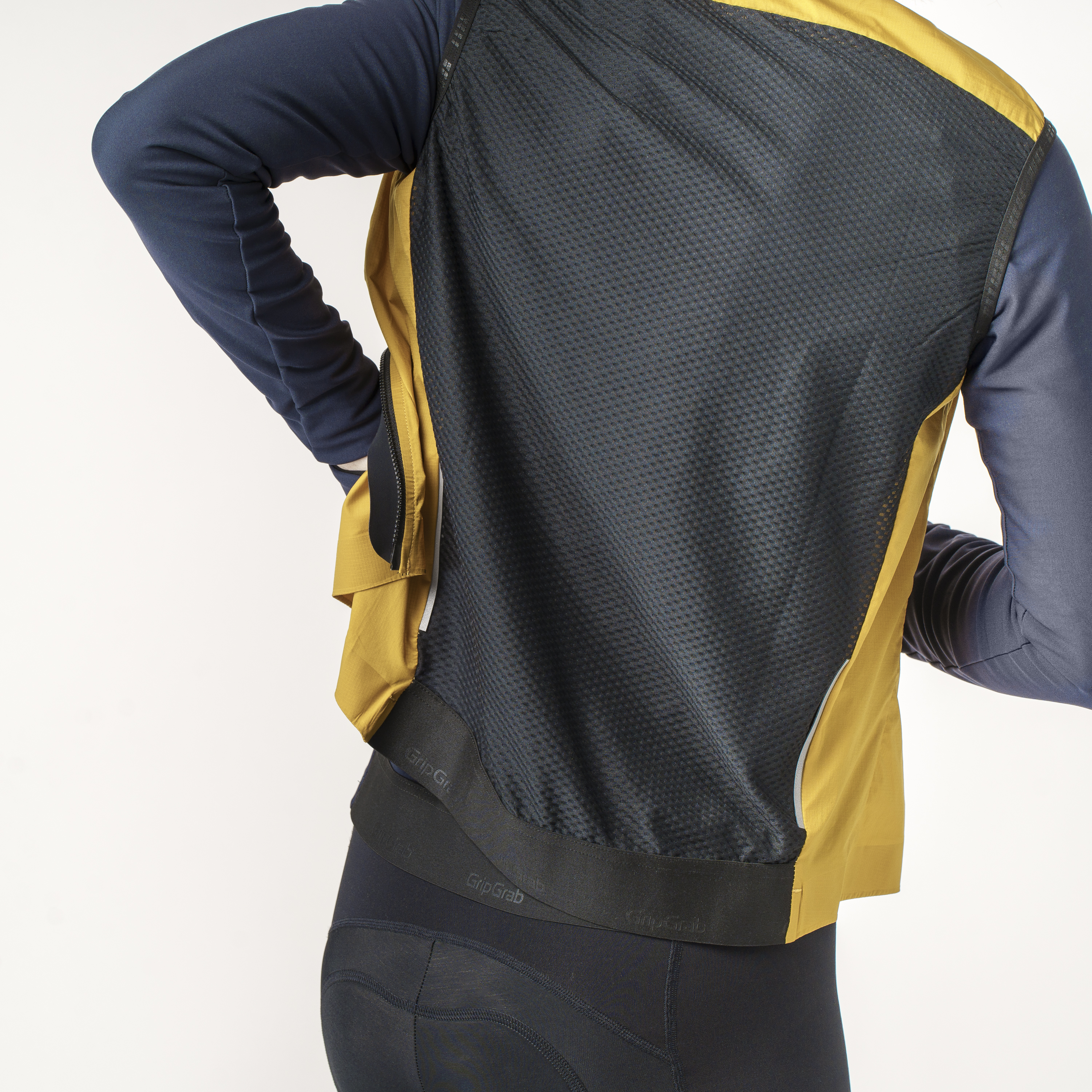 Vestens rygpanel i åben mesh lader fugt og varme slippe ud indefra, så selv når det går hårdt til, oparbejder du ikke sved, der får dig til at fryse. Elastikkanten forneden med silikonegribeprikker på vestens ryg holder alting sikkert på plads, når du kæmper dig frem i hård modvind.