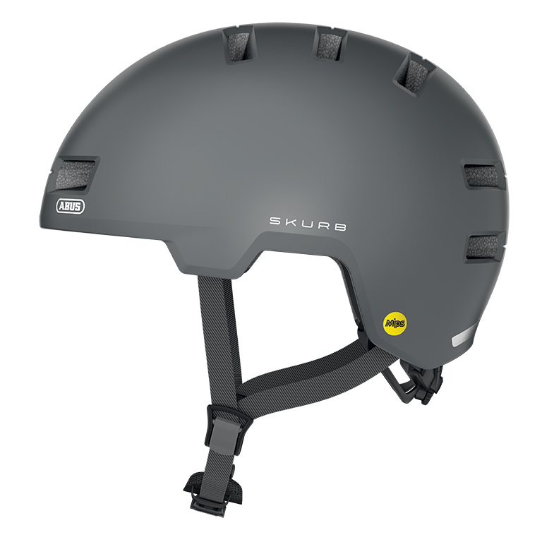 Sikkerhed i bytrafikken. Urban livsstil. ABUS Skurb er den perfekte løsning til pendlere og trendy sportsfolk enten til skating, longboarding eller BMX. De, der tidligere har været nødt til at bruge en tung ABS hard shell-hjelm i one size, vil synes om stilen og funktionerne ved denne trendy cykelhjelm. Det eksisterende Multi-directional Impact Protection System (MIPS) kan reducere den udløste energi med op til 40 % i tilfælde af en skråvinklet slagpåvirkning.