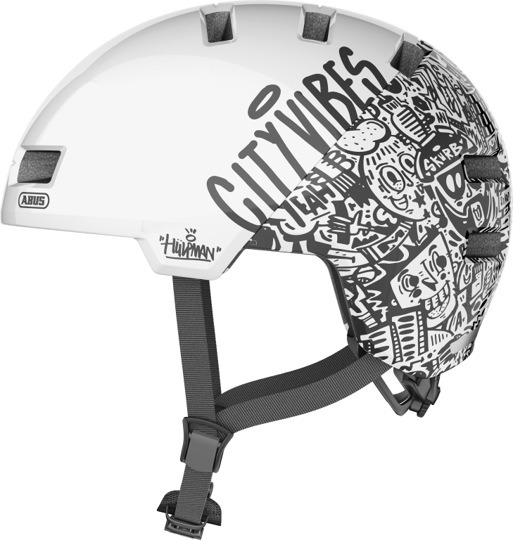 Sikkerhed i bytrafikken. Urban livsstil. ABUS Skurb er den perfekte løsning til pendlere og trendy sportsfolk enten til skating, longboarding eller BMX. De, der tidligere har været nødt til at bruge en tung ABS hard shell-hjelm i one size, vil synes om stilen og funktionerne ved denne trendy cykelhjelm. Især den unikke overflade, der består af matte og skinnende dele, skaber en iøjefaldende effekt.