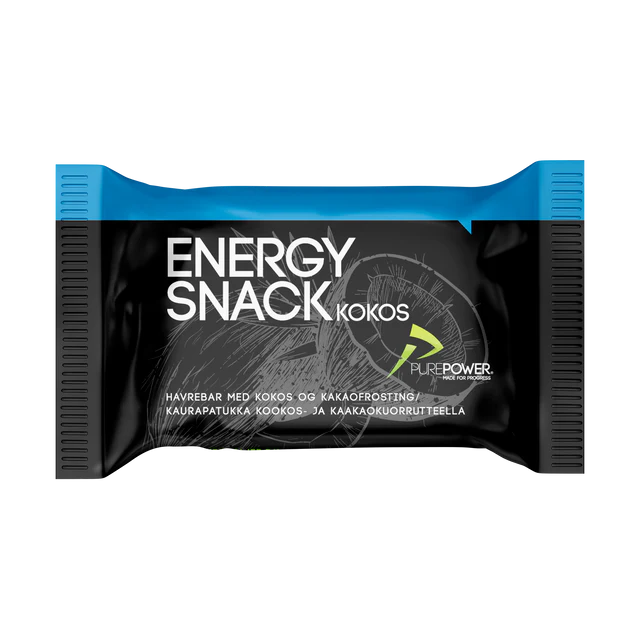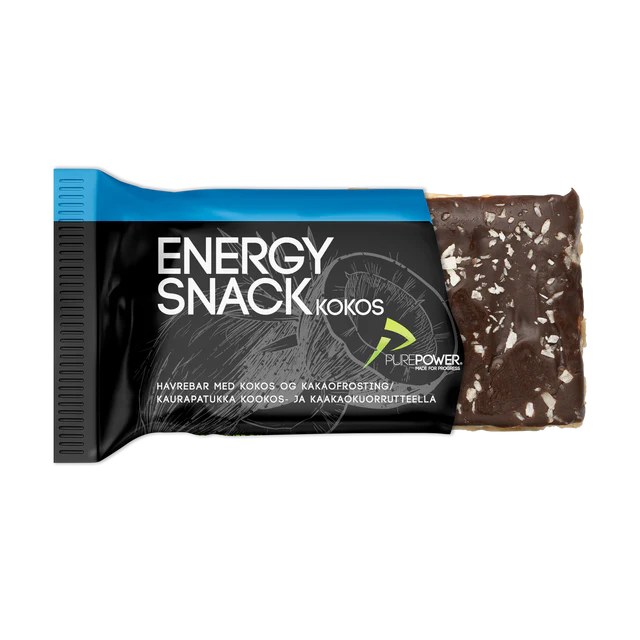 PurePower Energy Snack er en velsmagende energibar udviklet i Danmark baseret på havre og glukosesirup, som giver både hurtig og vedvarende energi.