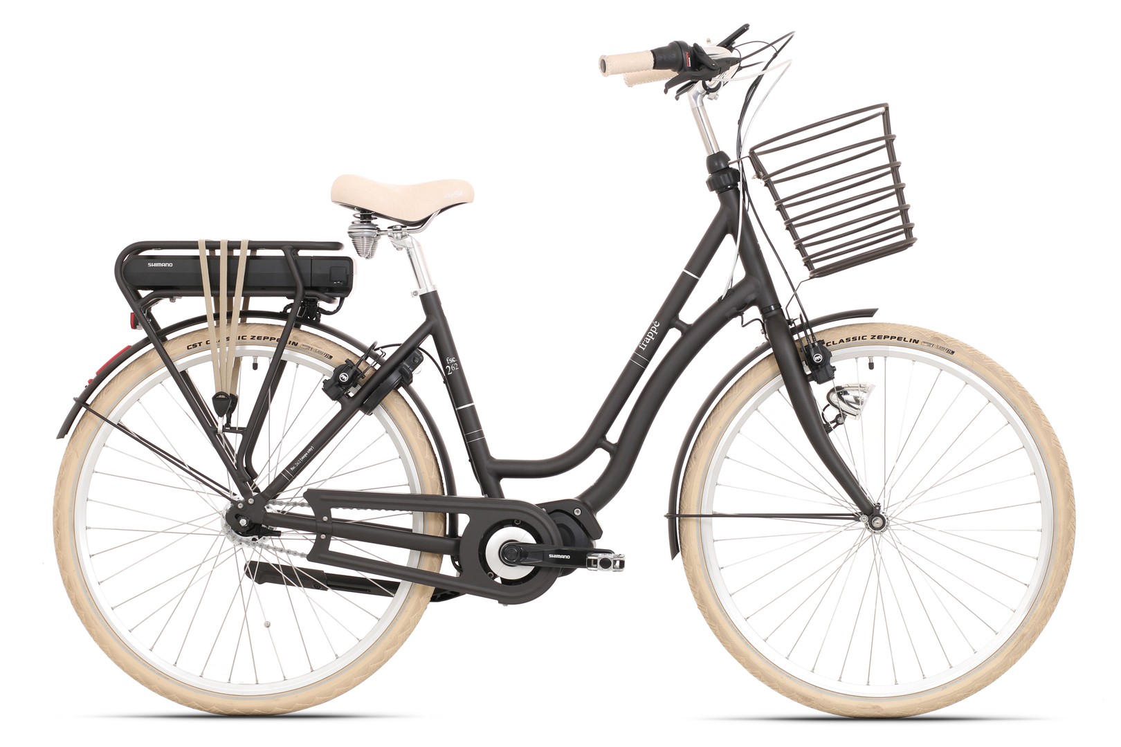 Frappé FSC 262 kombinerer et nostalgisk stel med moderne motorassistance og komfortorienterede detaljer. Den elegante ramme med lav indstigning gør den let at bruge for alle, mens den pålidelige Shimano Steps E6100 centermotor sikrer en støjsvag og kraftfuld køreoplevelse perfekt til både pendling og hverdagens ærinder.